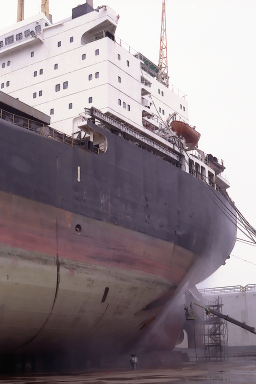 | In the dry dock in a freezing, winter Nagasaki. |